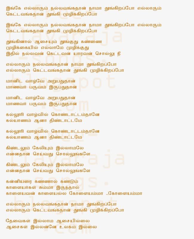 Lyrics of the Song : Inge Ellorum Nallavangathaan இங்கே எல்லாரும் நல்லவங்கதான் நாமா தூங்கிறப்போ
