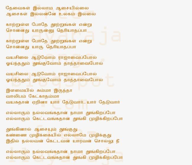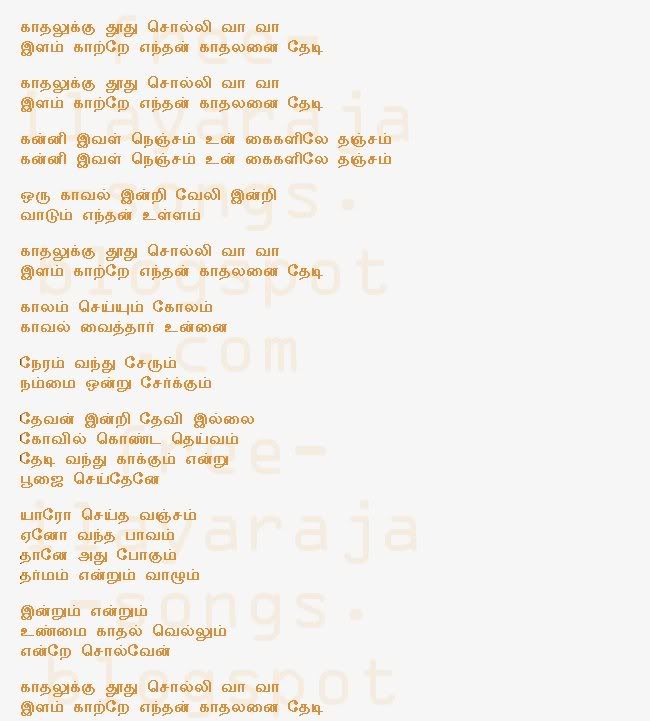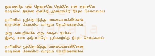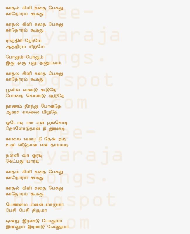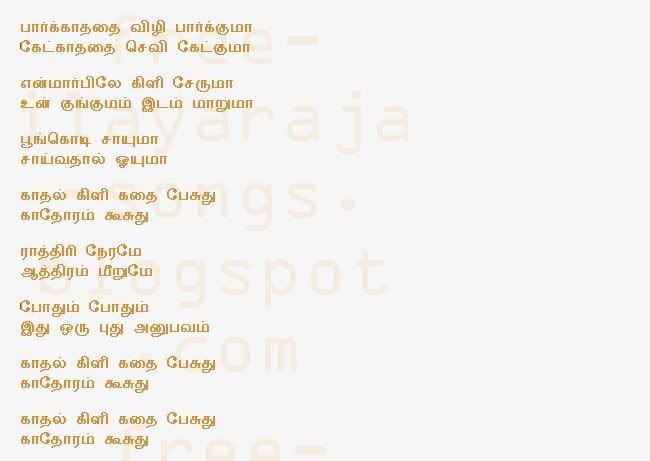 Lyrics of the Song : Kaathal Kili காதல் கிளி கதை பேசுது காதோரம் கூசுது