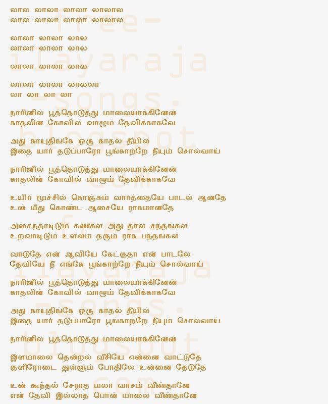 Lyrics of the Song : Naarinil Poo நாரினில் பூத்தொடுத்து மாலையாக்கினேன்
