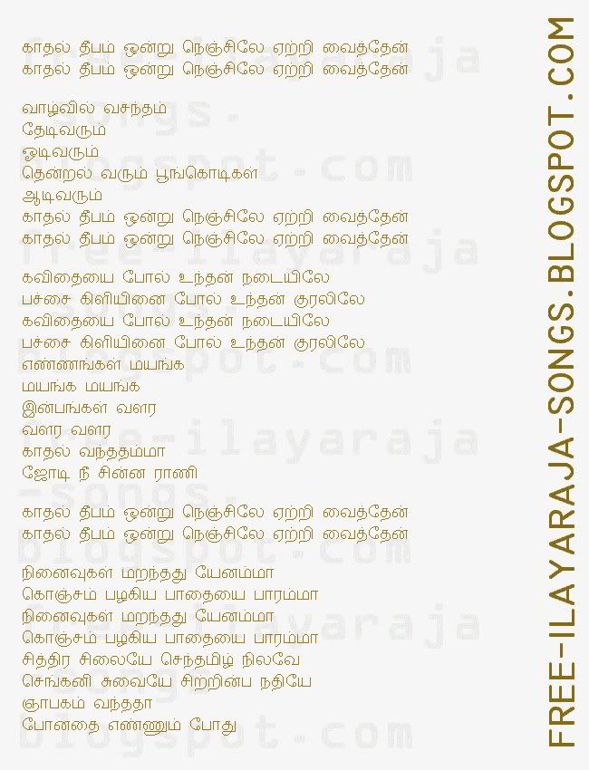 Title of the Song : Kaathal Deepam Ontru Nenjile Etri Vaithen