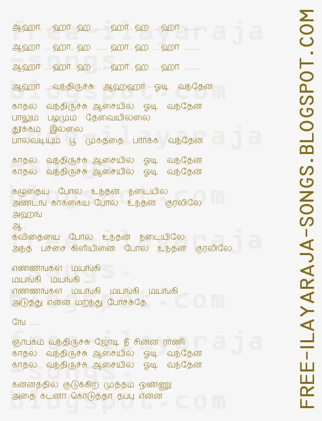 Title of the Song : Kaathal Vanthiruchu Aasaiyil Odi Vanthen