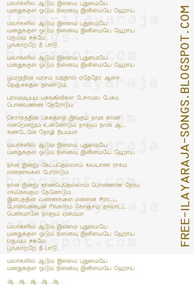 Title of the Song : Malargalil Aadum Ilamai Puthumaiye
