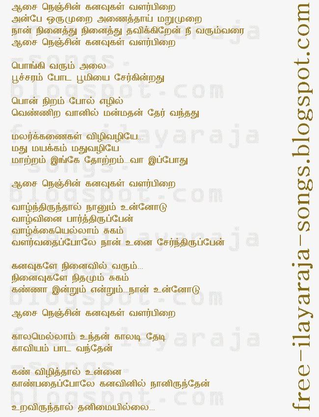 Title of the Song : Aasai Nenjin Kanavukal Valarpirai