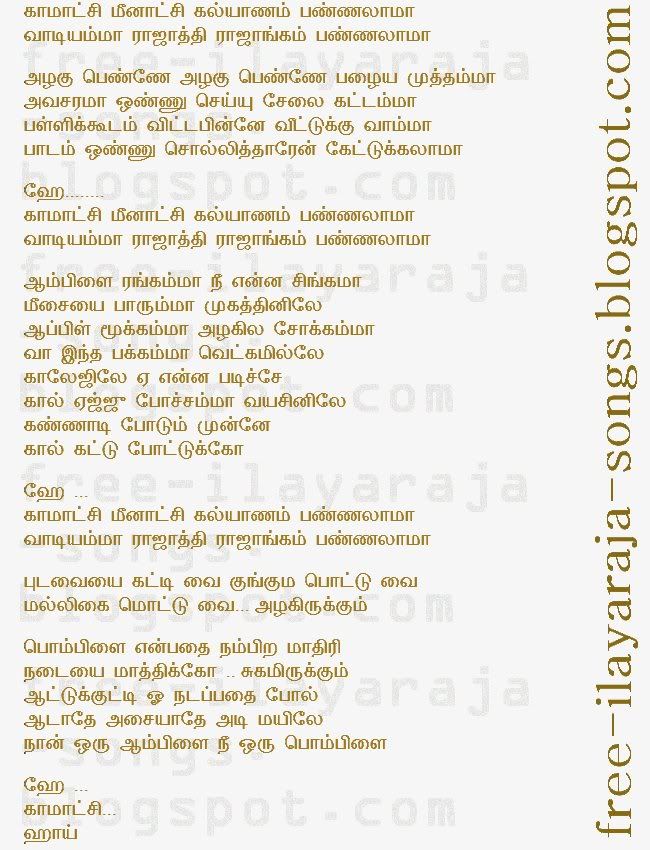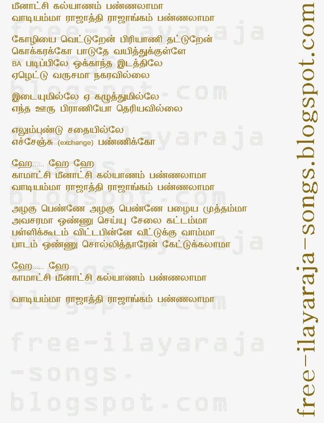 பாடல் தலைப்பு : காமாட்சி மீனாட்சி கல்யாணம் பண்ணலாமா