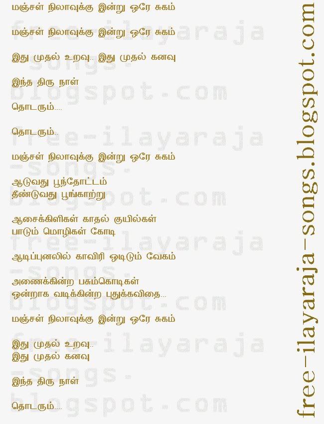 பாடல் தலைப்பு : மஞ்சள் நிலாவுக்கு இன்று ஒரே சுகம்