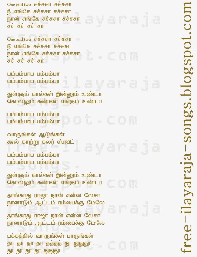 பாடல் தலைப்பு : One and two சச்சசா சச்சசா