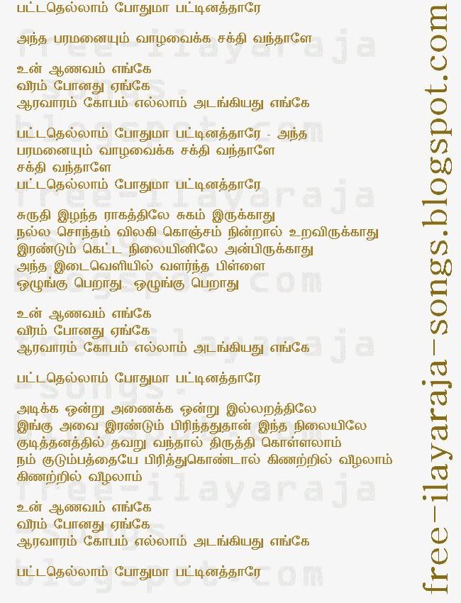 பாடல் தலைப்பு : பட்டதெல்லாம் போதுமா பட்டினத்தாரே