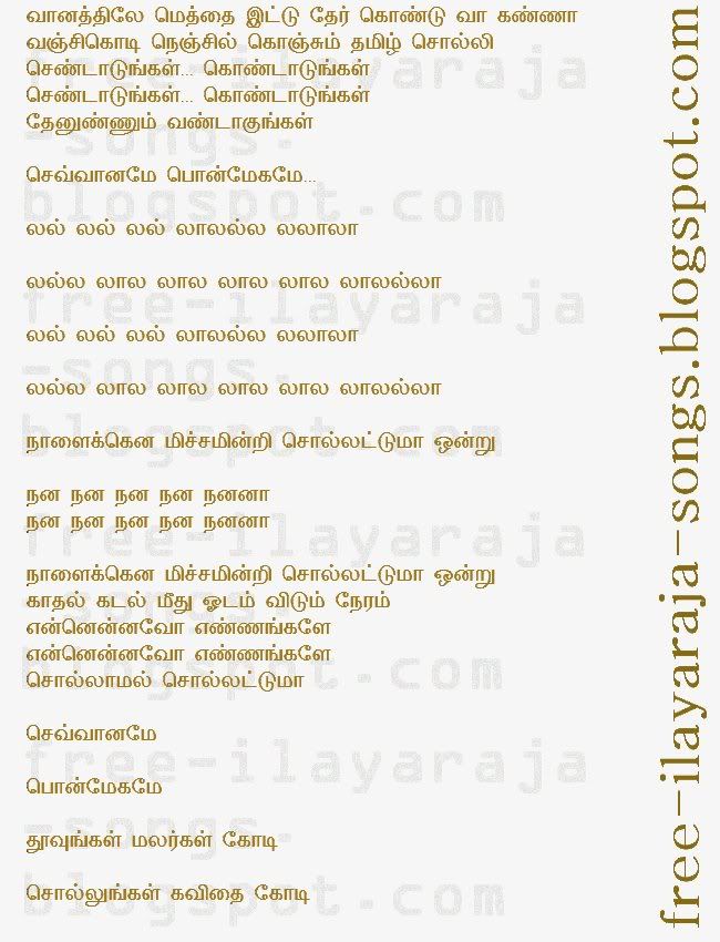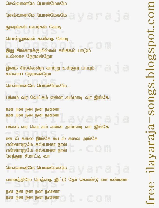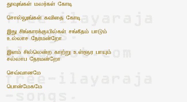 பாடல் தலைப்பு : செவ்வானமே பொன்மேகமே