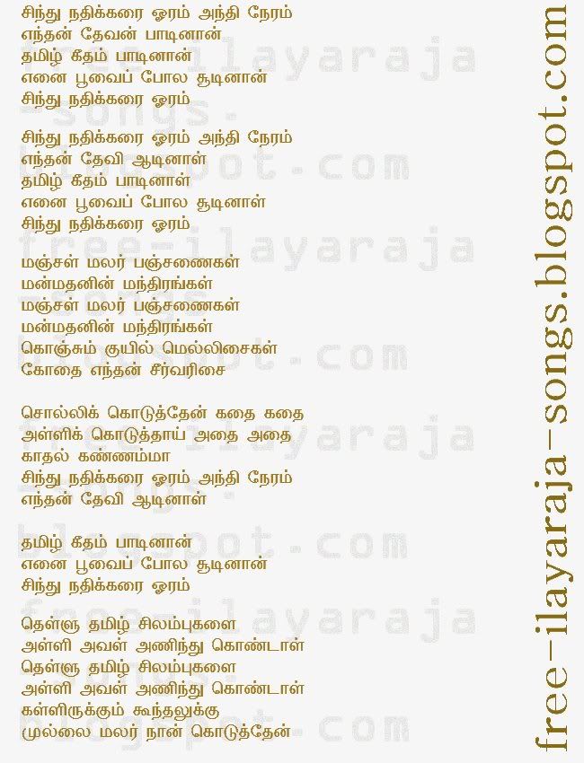 பாடல் தலைப்பு : சிந்து நதிக்கரை ஓரம் அந்தி நேரம்