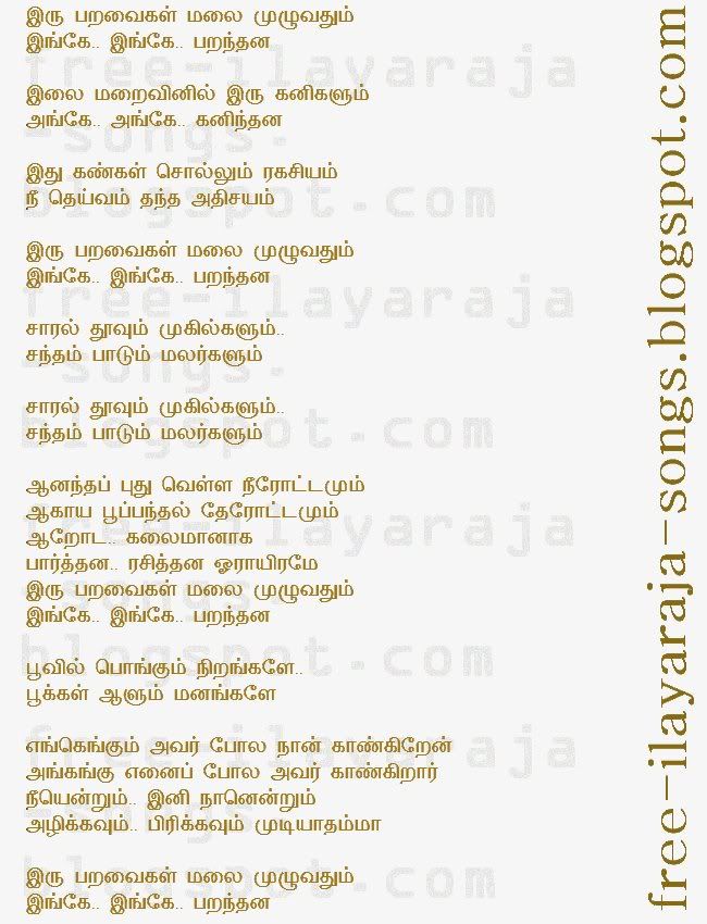 Title of the Song : Iru Paravaigal Malai Muzhuvathum