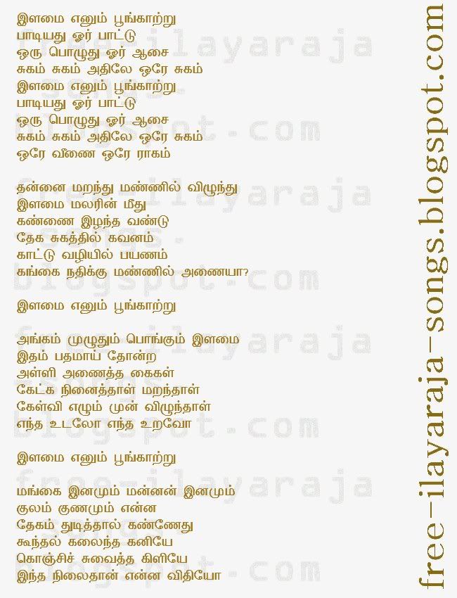 Title of the Song : Ilamai Enum Poongkaatru Paadiyathu Or Paattu