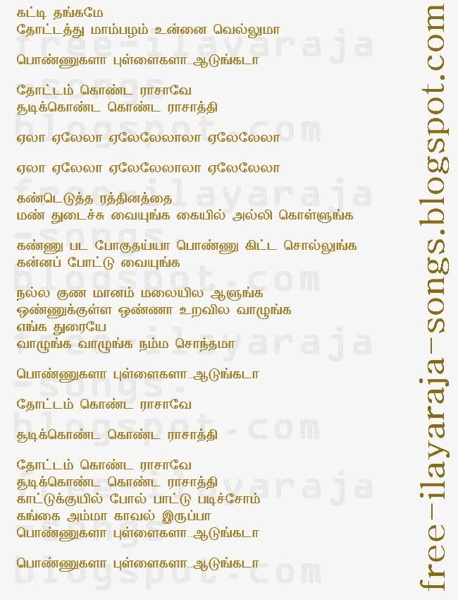 Lyrics of the Songs பாடல் வரிகள்